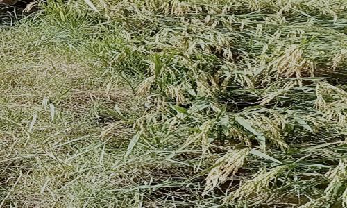 వనపర్తి జిల్లా గోపాల్పేట్ మండల కేంద్రంలో అకాల వర్షం తుపాను కారాల వల్ల 5 ఎకరాల వరి పంట నీట మునిగిన ఘటన గురువారం ఉదయం వెలుగులోకి వచ్చింది రైతు బత్తుల శ్రీశైలం యాదవ్ వివరాల ప్రకారం వరి కోత కోసే సమయానికి ఇలా జరగడం పంట మొత్తం నీట మునిగి మొలకలు రావడం చూసి ఆ రైతు కుటుంబం కంటతడి పెడుతున్నారు. 5 ఎకరాలు కౌలుకు తీసుకొని ఎకరా కు 7000 చొప్పున 5 ఎకరాలకు 35000 నష్టం అయ్యానని అదేవిధంగా ఎకరాకు పెట్టుబడి 20,000 పెట్టుబడి 5 ఎకరాలకు మొత్తం 1 లక్ష రూపాయలు అయిందని రైతు దిగులుగా నెత్తికి చేతులు పెట్టుకొని ఏమి ఏం చేయాలి స్థితిలో బాధపడుతూ మొత్తం 1 లక్ష 35వేల రూపాయలు నష్టం జరిగిందని కావున ఈ పేద రైతును ఎలాగైనా ప్రభుత్వం ఆదుకోవాలని రైతు బత్తుల శ్రీశైలం యాదవ కుటుంబం ప్రభుత్వాన్ని వేడుకుంటున్నారు