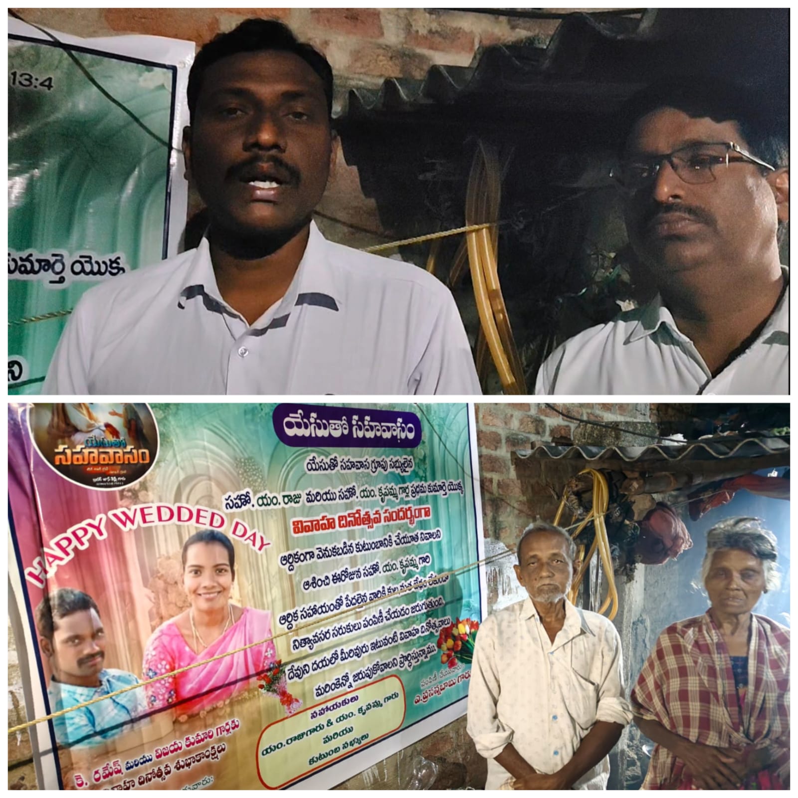 యేసుతో సహవాసం గ్రూపు సభ్యులు విజయ్ కుమారి, రమేష్ వివాహ వార్షికోత్సవాన్ని పురస్కరించుకొని నాదెండ్ల మండలం, గణపవరం గ్రామానికి చెందిన ఖాసింబి, సుభాని భార్యాభర్తలు. క్యాన్సర్ బాధితురాలైన ఖసింబి దీర్ఘకాలంగా ట్యూబులతో మలమూత్ర విసర్జన తో బాధపడుతున్నందున, పాస్టర్ ప్రసన్న బాబు ఆధ్వర్యంలో ఈరోజు 25 కేజీల బియ్యం, 28 రకాల నిత్యావసర సరుకులు పంపిణీ చేయడం అభినందనీయమని అడ్వకేట్ మరియు సామాజికవేత్త మాదాసు భాను ప్రసాద్ అన్నారు. యేసుతో సహవాసం గ్రూపు సభ్యుల చేత సేవా కార్యక్రమాలను ప్రోత్సహిస్తున్న జాన్ వెస్లీ అభినందనీయులని అన్నారు. ఈ కార్యక్రమంలో వాసు తదితరులు పాల్గొన్నారు.